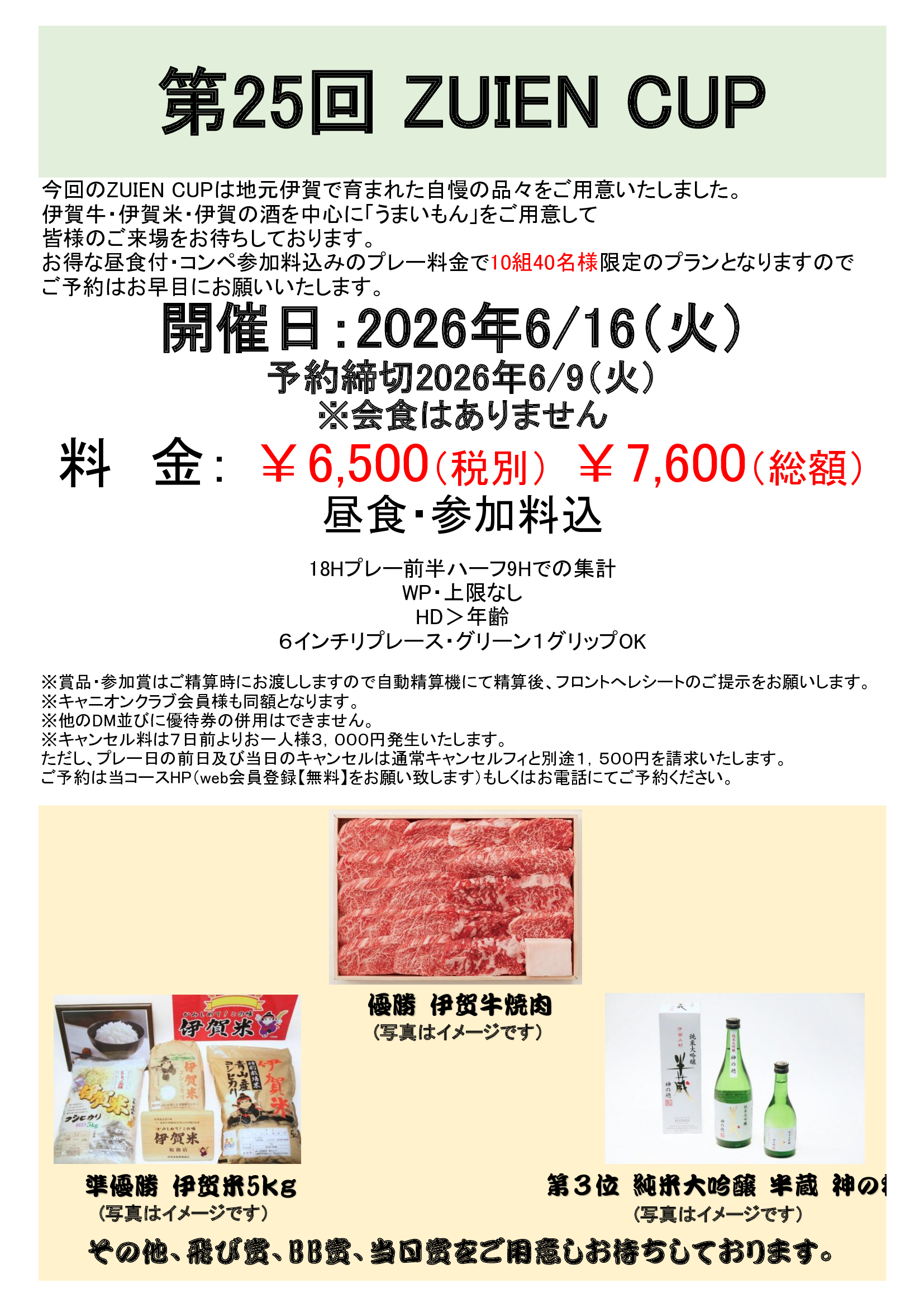 news 2026.04.29 隨縁カントリー倶楽部 キャニオン上野コース 2026.5~2026.8料金表 2026.04.29 隨縁カントリー倶楽部 キャニオン上野コース 6月タイムセール第1弾 2026.04.29 隨縁カントリー倶楽部 キャニオン上野コース 5月自社HP限定プラン 2026.04.28 妙見富士カントリークラブ 大浴場(浴槽)利用再開のお知らせ お知らせを全て見る event イベント情報を全て見る 2026.04.29 隨縁カントリー倶楽部 西神戸コース オープンコンペ 7月開催日程 2026.04.29 隨縁カントリー倶楽部 キャニオン上野コース 【オープンコンペ】第25回 ZUIEN CUP 10組40名様 限定のご案内 2026.04.29 福崎東洋ゴルフ練習場 🎏GWイベント開催のお知らせ⛳ 2026.04.28 鳴沢ゴルフ倶楽部 【2026.7.10(金)】マンスリー鳴沢カップ開催 のお知らせ our group 北海道隨縁カントリークラブ恵庭コース 千葉県ジャパンPGAゴルフクラブ 山梨県鳴沢ゴルフ倶楽部 山梨県隨縁カントリークラブセンチュリー富士コース 三重県隨縁カントリークラブキャニオン上野コース 兵庫県隨縁カントリークラブ西神戸コース 兵庫県妙見富士カントリークラブ 兵庫県福崎東洋ゴルフ倶楽部 兵庫県福崎東洋ゴルフ練習場 グループゴルフ場を詳しく見る hotel 宿泊施設詳しく見る 隨縁カントリークラブ センチュリー富士コース 妙見富士カントリークラブ