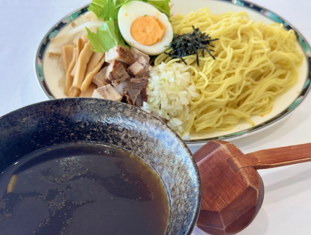 柚子の香りと酢を効かせた自家製のつけダレに冷水で締めた麺をつけてお召し上がり下さい。