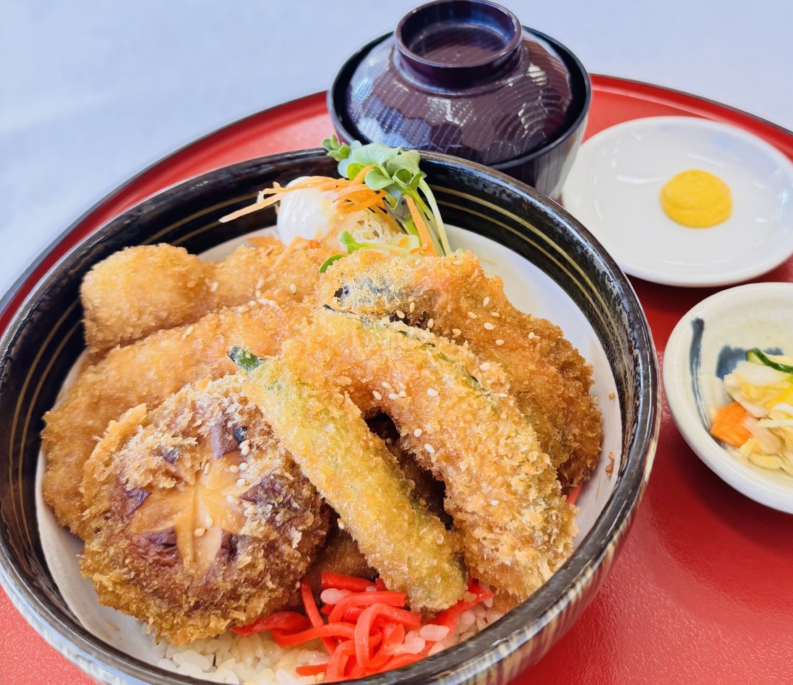 ≪豚ヒレと野菜のタレカツ丼≫ 豚ヒレとお野菜のカツが盛り沢山に盛り付けら...