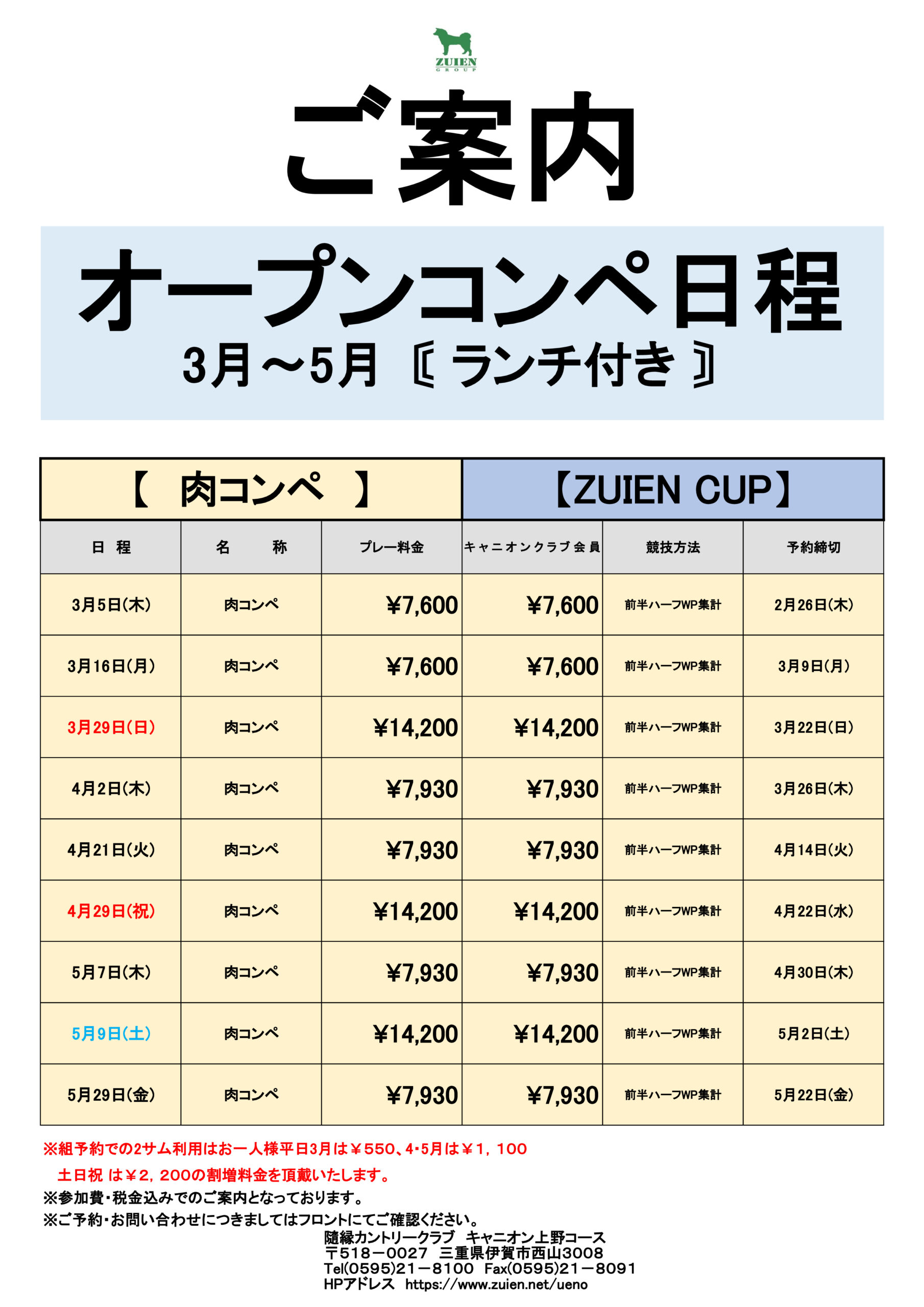 news 2026.02.26 隨縁カントリー倶楽部 キャニオン上野コース 2026.3~2026.6月料金表 2026.02.26 福崎東洋ゴルフ俱楽部 月末・月初セール受付中 2026.02.25 福崎東洋ゴルフ練習場 ⛳️ ツアーボール販売中 2026.02.25 妙見富士カントリークラブ 大人気! 超高確率当選抽選会 3月末迄 延長決定! お知らせを全て見る event イベント情報を全て見る 2026.02.26 隨縁カントリー倶楽部 キャニオン上野コース オープンコンペ開催日程 2026.02.25 妙見富士カントリークラブ 大人気! 超高確率当選抽選会 3月末迄 延長決定! 2026.02.25 福崎東洋ゴルフ練習場 営業時間のご案内 2026.02.24 妙見富士カントリークラブ 次回 豪華年度末コンペ! 3/30(月)開催 先着60名! 約2人に1人が豪華賞品が当たる! our group 北海道隨縁カントリークラブ恵庭コース 千葉県ジャパンPGAゴルフクラブ 山梨県鳴沢ゴルフ倶楽部 山梨県隨縁カントリークラブセンチュリー富士コース 三重県隨縁カントリークラブキャニオン上野コース 兵庫県隨縁カントリークラブ西神戸コース 兵庫県妙見富士カントリークラブ 兵庫県福崎東洋ゴルフ倶楽部 兵庫県福崎東洋ゴルフ練習場 グループゴルフ場を詳しく見る hotel 宿泊施設詳しく見る 隨縁カントリークラブ センチュリー富士コース 妙見富士カントリークラブ